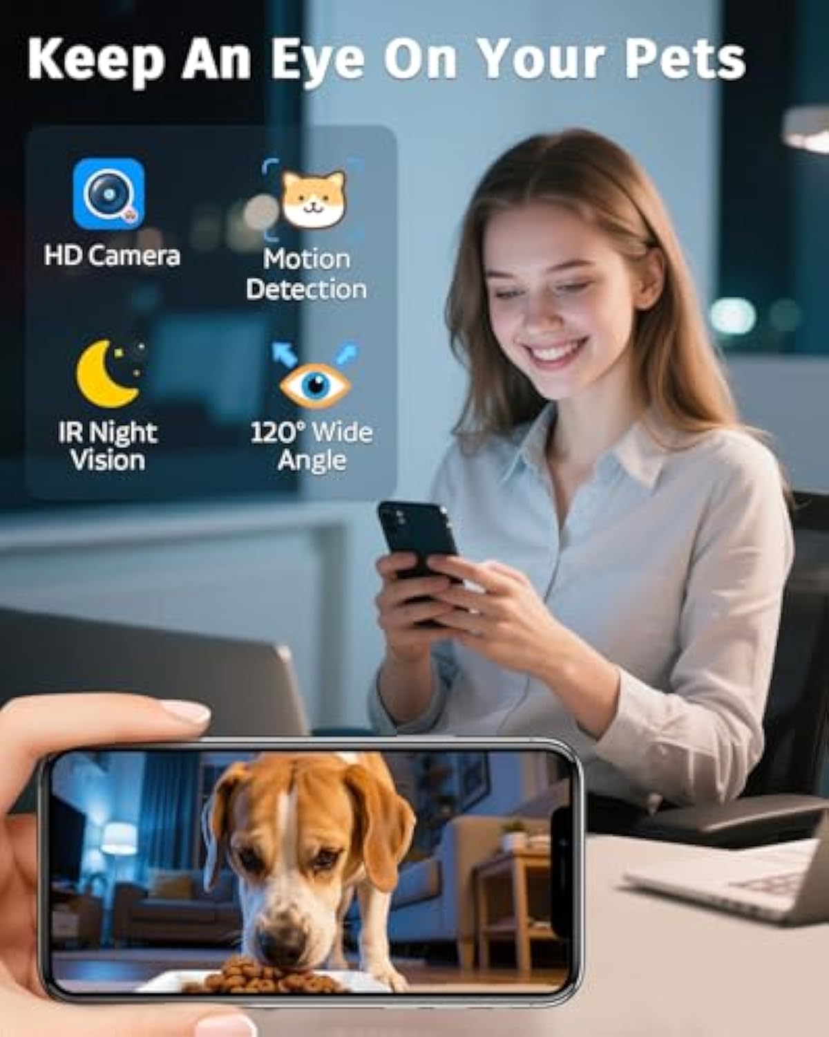 - Two-Way Audio for Emotional Connection: Stay emotionally connected with your pet using the two-way audio feature. Comfort your dog or cat with your voice, ensuring they feel safe and loved, whether at home, at work, or traveling. Perfect for busy professionals who want to stay close to their pets