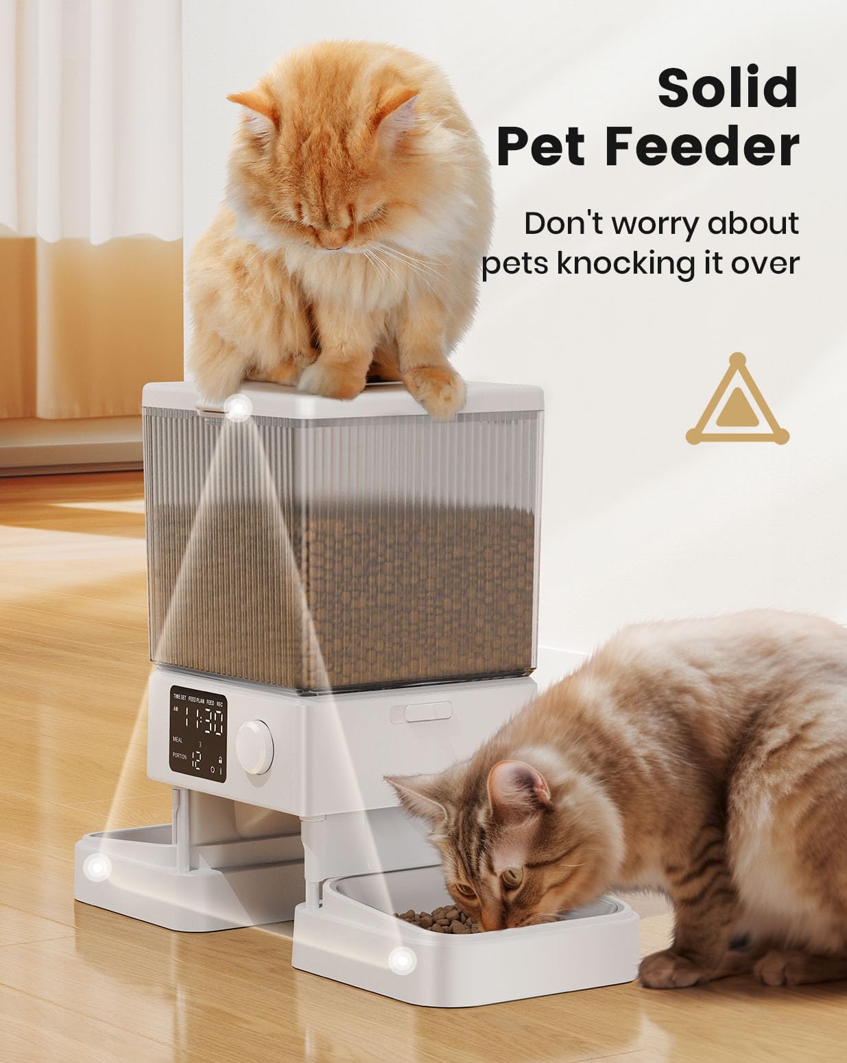 - 5 L/20 Cups Capacity: A full tank of dry food allows 2 adult cats to eat for 10 days. You donโt need to ask neighbors or pet sisters to feed your pets when you go away for weekend or vacation